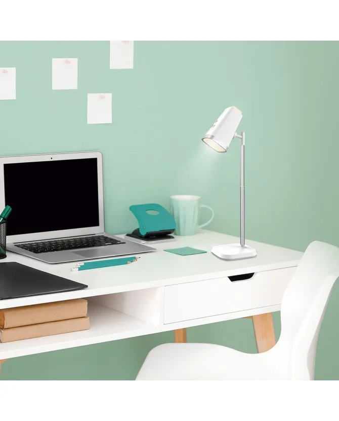 Con 6W LED y CCT de tres tonalidades3000K, 4000K y 6500K—, todas regulables, puedes ajustar tono e intensidad según la tarea: cálida para relax, neutra para estudio prolongado y blanca para máxima nitidez. Su acabado blanco y la combinación de ABS + aluminio aportan estética limpia y robustez ligera.