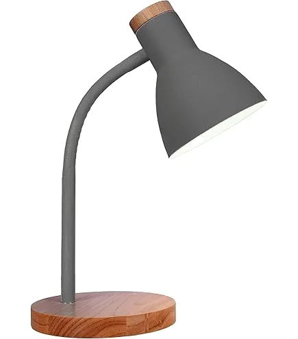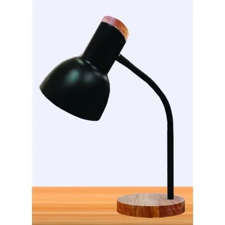 Está fabricado con cuerpo metálico y base de madera, proporcionando una estructura sólida y estable para el uso diario. Su cabezal orientable permite dirigir la luz con precisión hacia el área de trabajo o lectura, lo que lo hace perfecto para estudiar, teletrabajar, leer o iluminar una mesilla de noche sin deslumbrar.