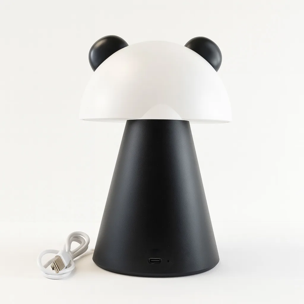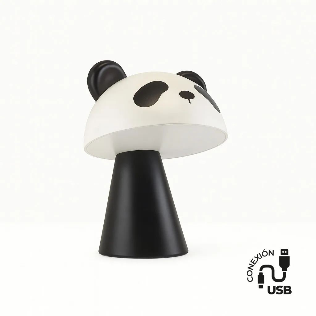 Lámpara infantil Panda (oso panda) con LED 3 W 3000 K, recargable por USB. ABS+PVC en blanco/negro. Ideal para mesillas y lectura.