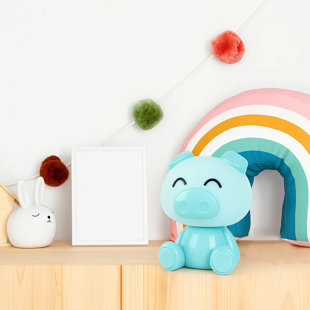 La lámpara infantil Pig aporta ternura y un punto de color al dormitorio gracias a su diseño en forma de cerdito. Emite luz cálida (3000 K) con LED integrado de 3 W, perfecta para lectura de cuentos, rutinas antes de dormir o como luz de compañía suave.